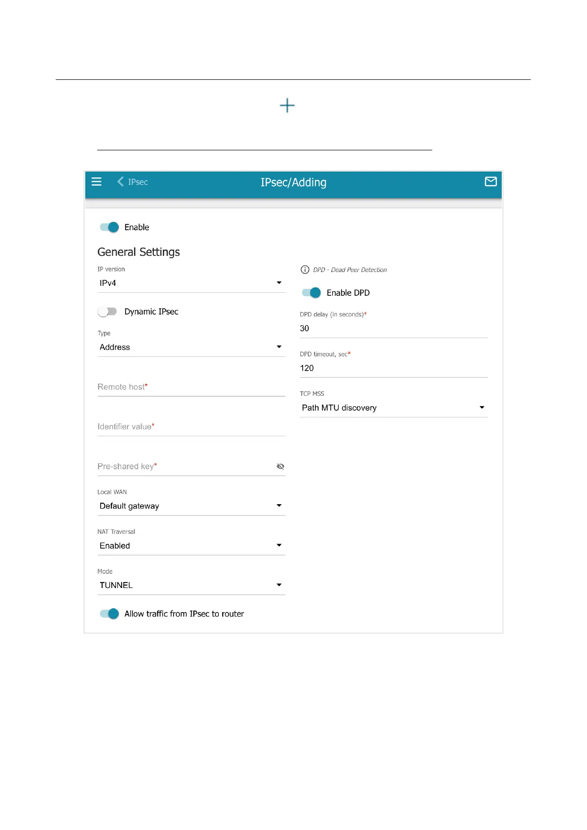 Figure 109. The page for adding an IPsec tunnel. The General Settings section.