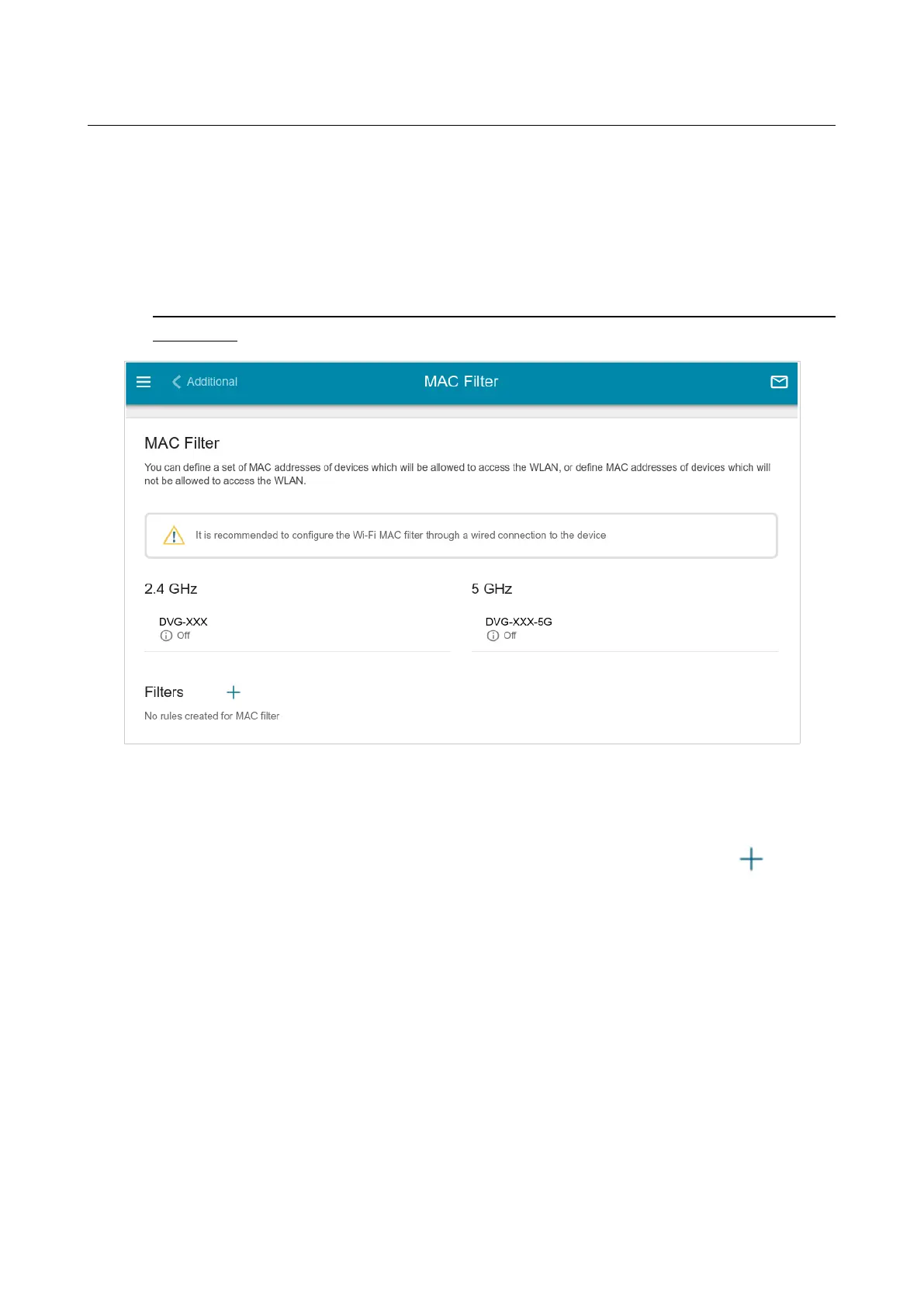 It is recommended to configure the Wi-Fi MAC filter through a wired connection to DVG-