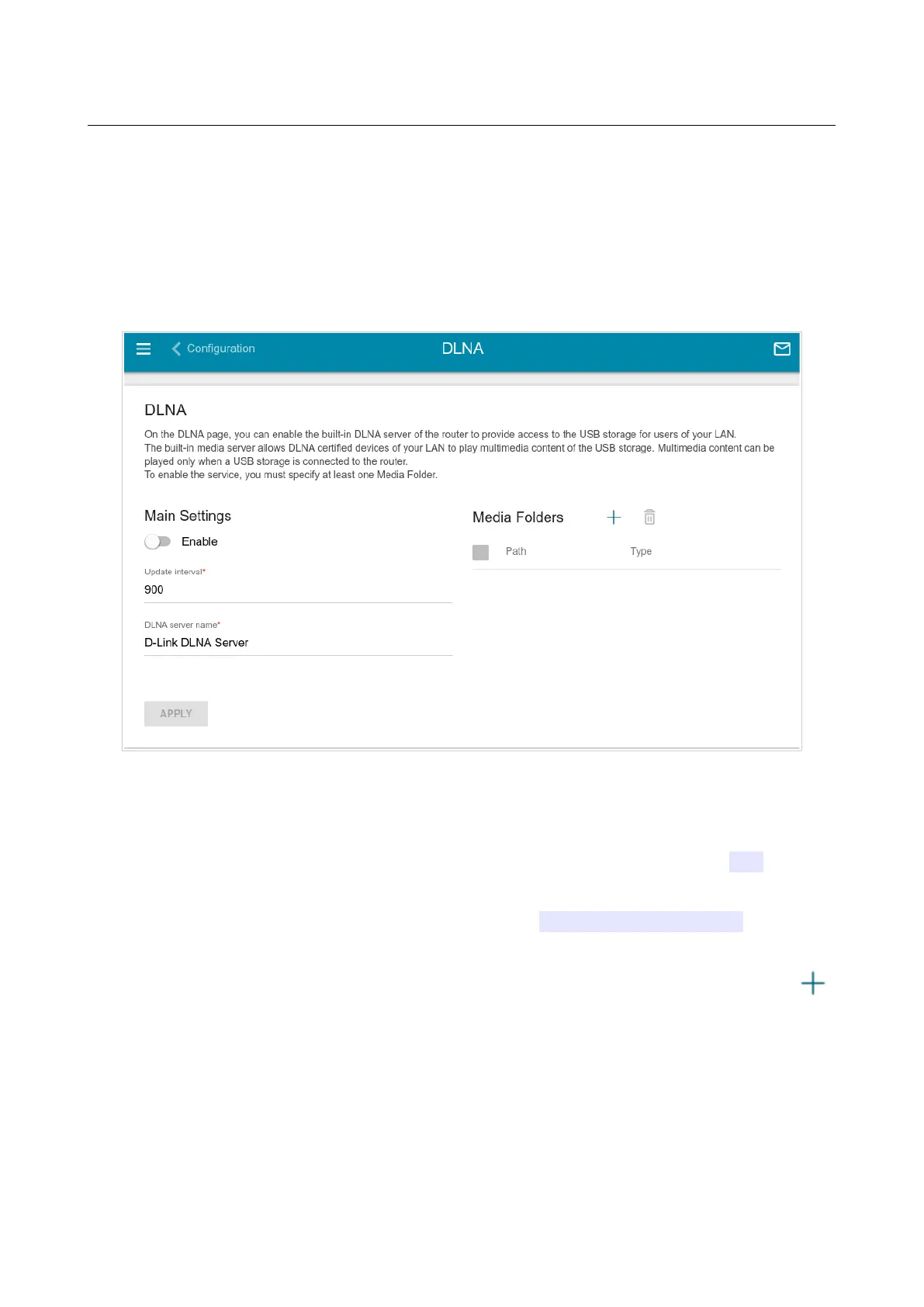 On the USB Storage / DLNA page, you can enable the built-in DLNA server of the router to