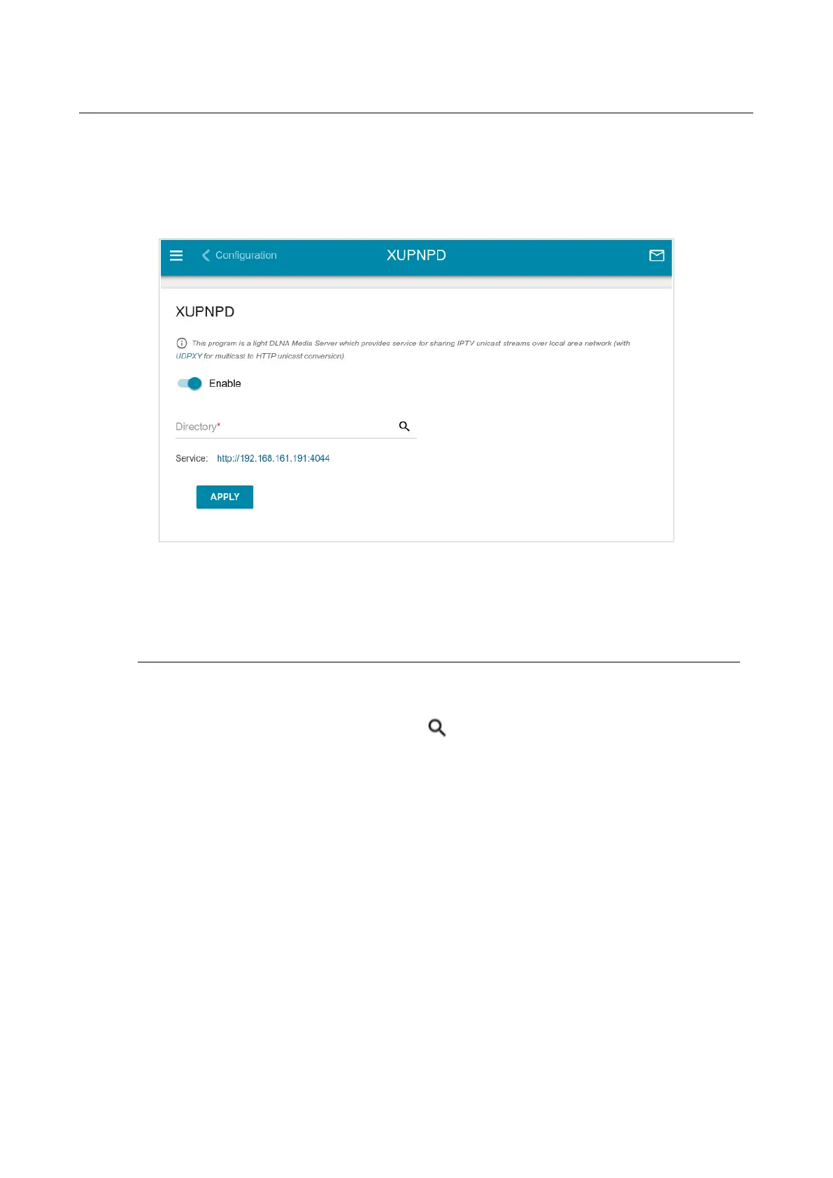 To use the XUPNPD plug-in, connect a USB storage to the router and move the Enable switch to