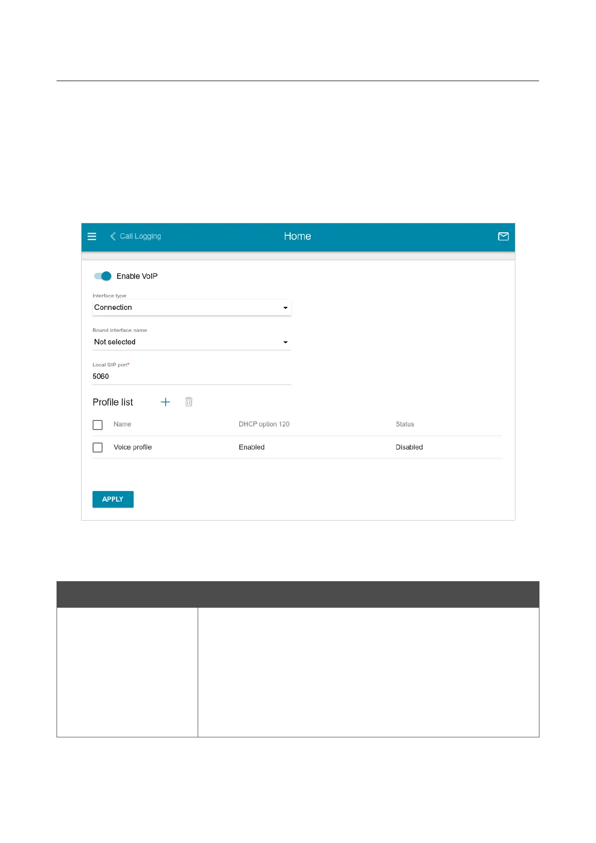 On the VoIP / Home page you can enable VoIP and manage profiles.