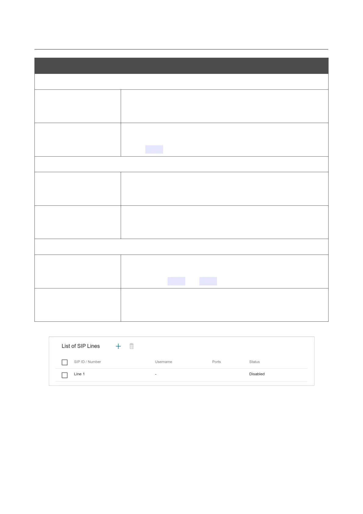 Figure 183. The VoIP / Profile Name / Basic Settings. The List of SIP Lines section.