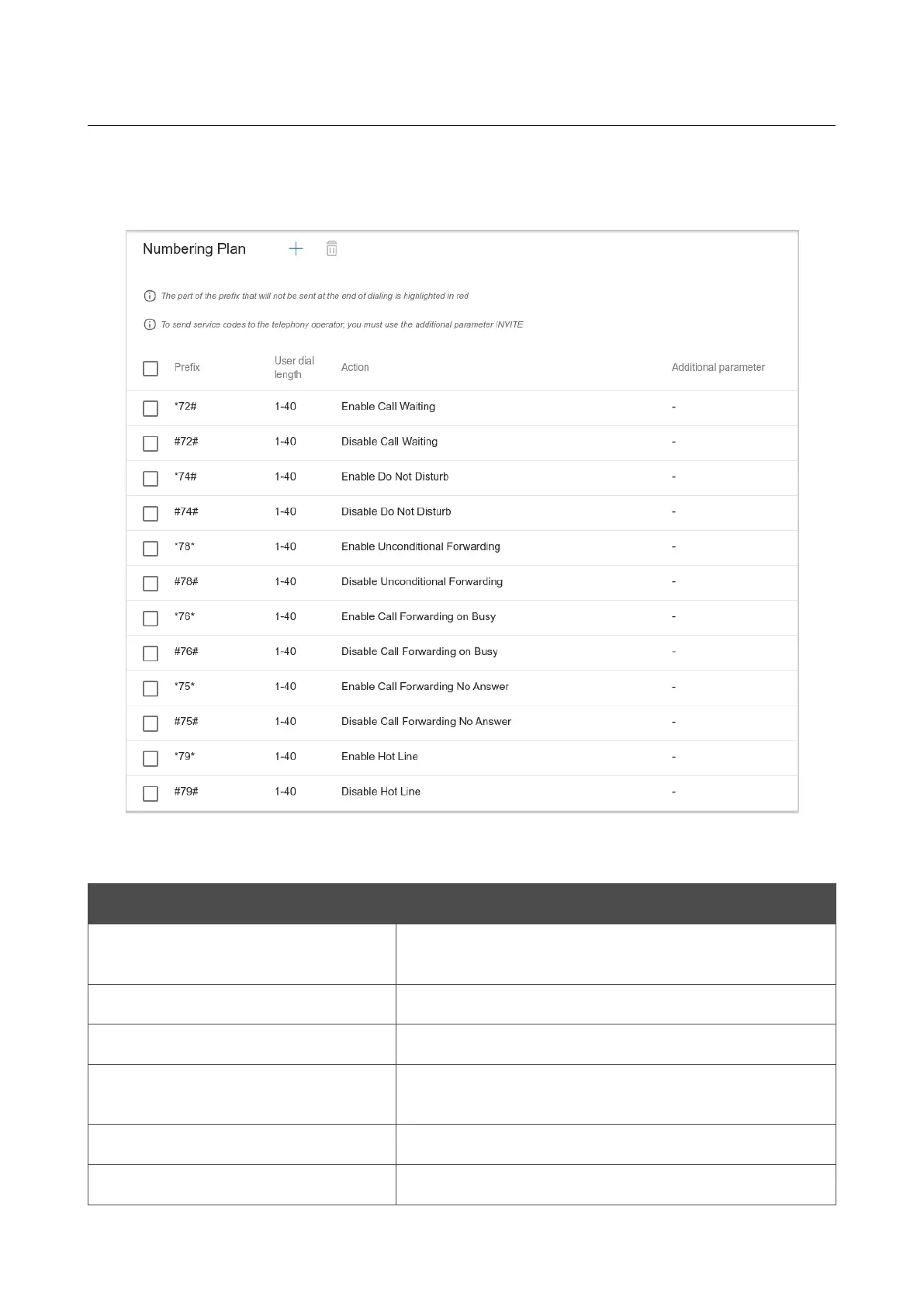 In the Numbering Plan section, you can configure abbreviated dial, local calls, calls by IP, and