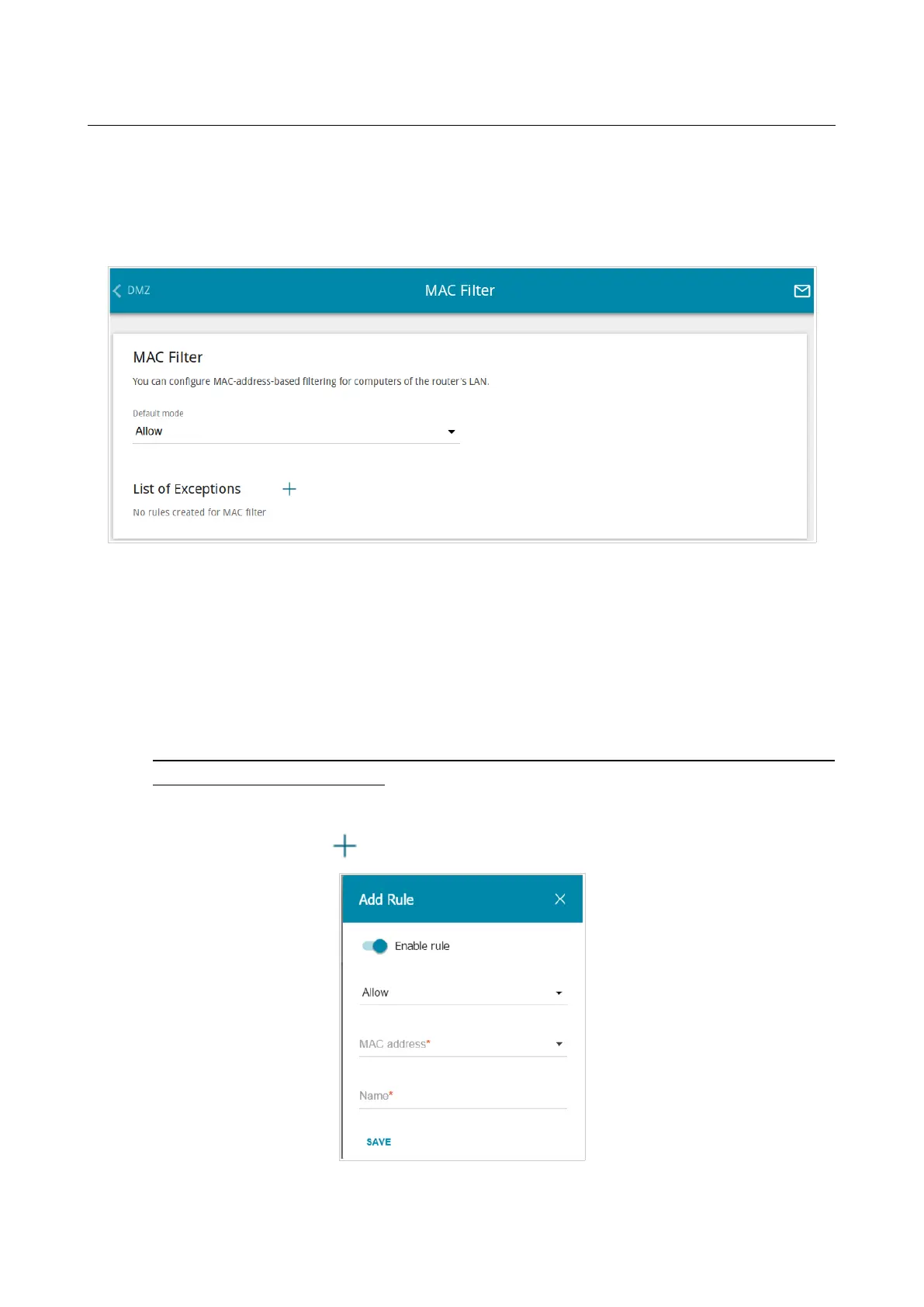 To create a rule (specify a MAC address of a device for which the specified filtering mode will be