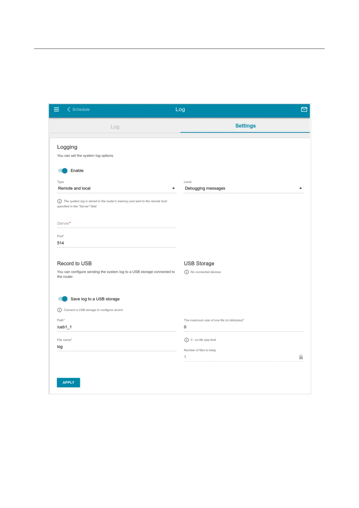 To enable logging of the system events, go to the Settings tab and move the Enable switch to the