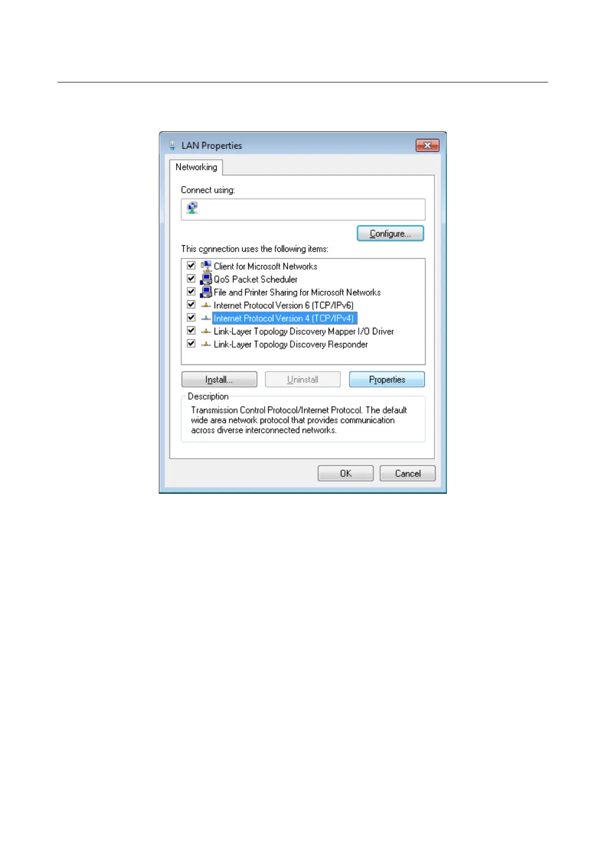 Internet Protocol Version 4 (TCP/IPv4) line. Click the Properties button.