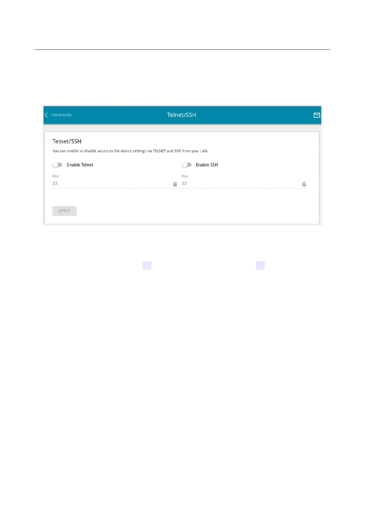TELNET and/or SSH from your LAN. By default, access is disabled.
