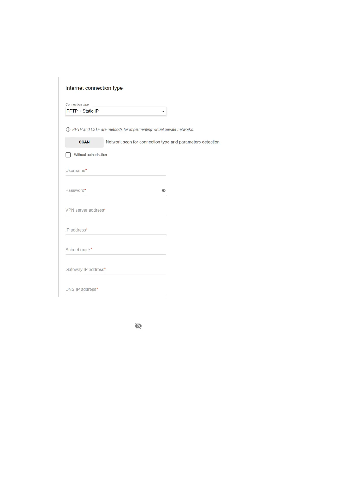 your ISP. Click the Show icon ( ) to display the entered password. If authorization is not