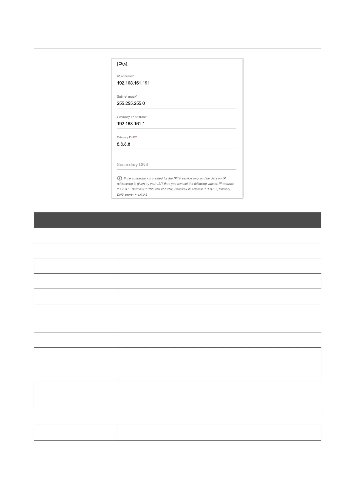 Figure 69. The page for creating a new Static IPv4 connection. The IPv4 section.