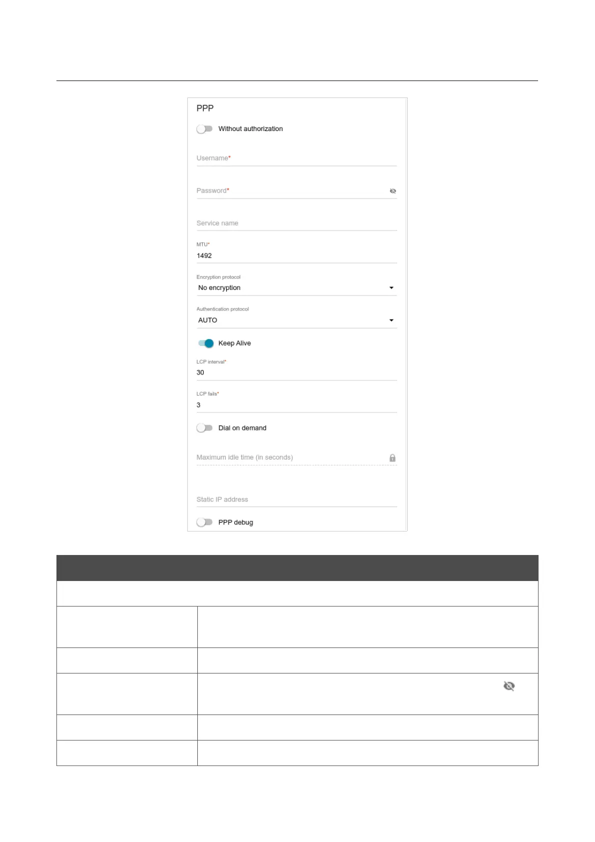 Figure 75. The page for creating a new PPPoE connection. The PPP section.