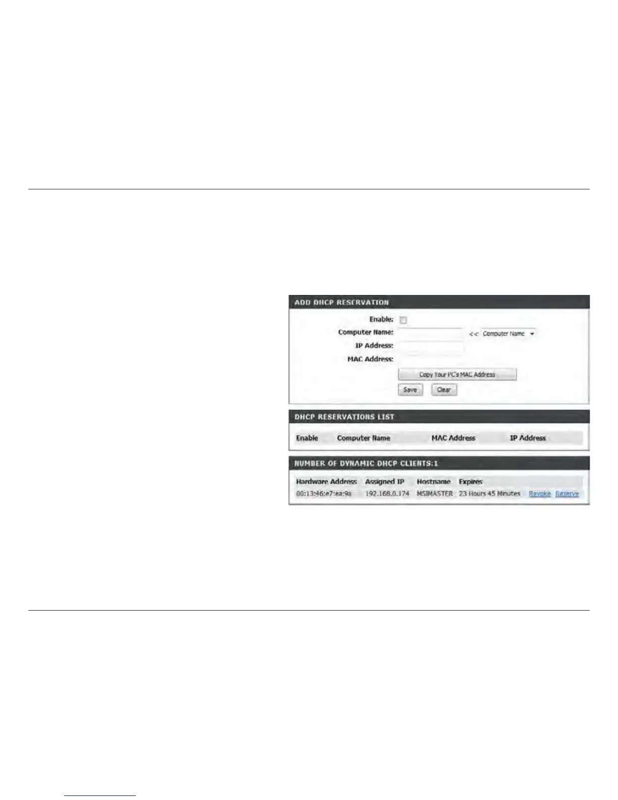 If you want a computer or device to always have the same IP address assigned, you can create a DHCP reservation.
