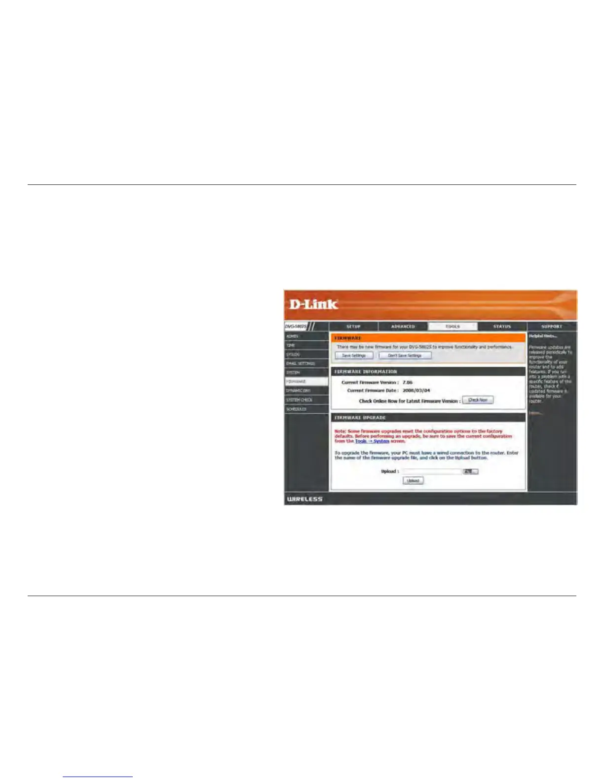 site for rmware updates at http://support.dlink.com. You can download rmware upgrades to your hard drive from the