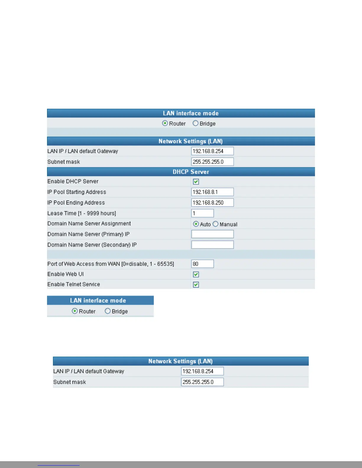 y Bridge: The system serves as a Bridge between WAN port and LAN port without NAT. (LAN default