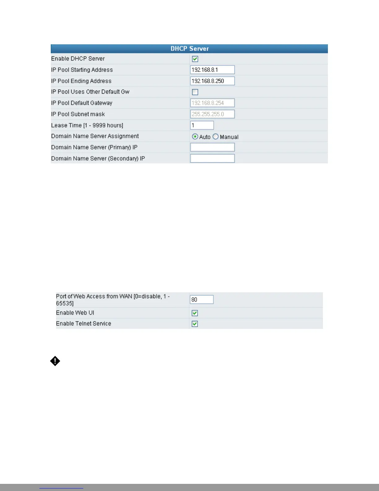 y Port of Web Access from WAN: HTTP port for WAN. To change this setting, web configuration must