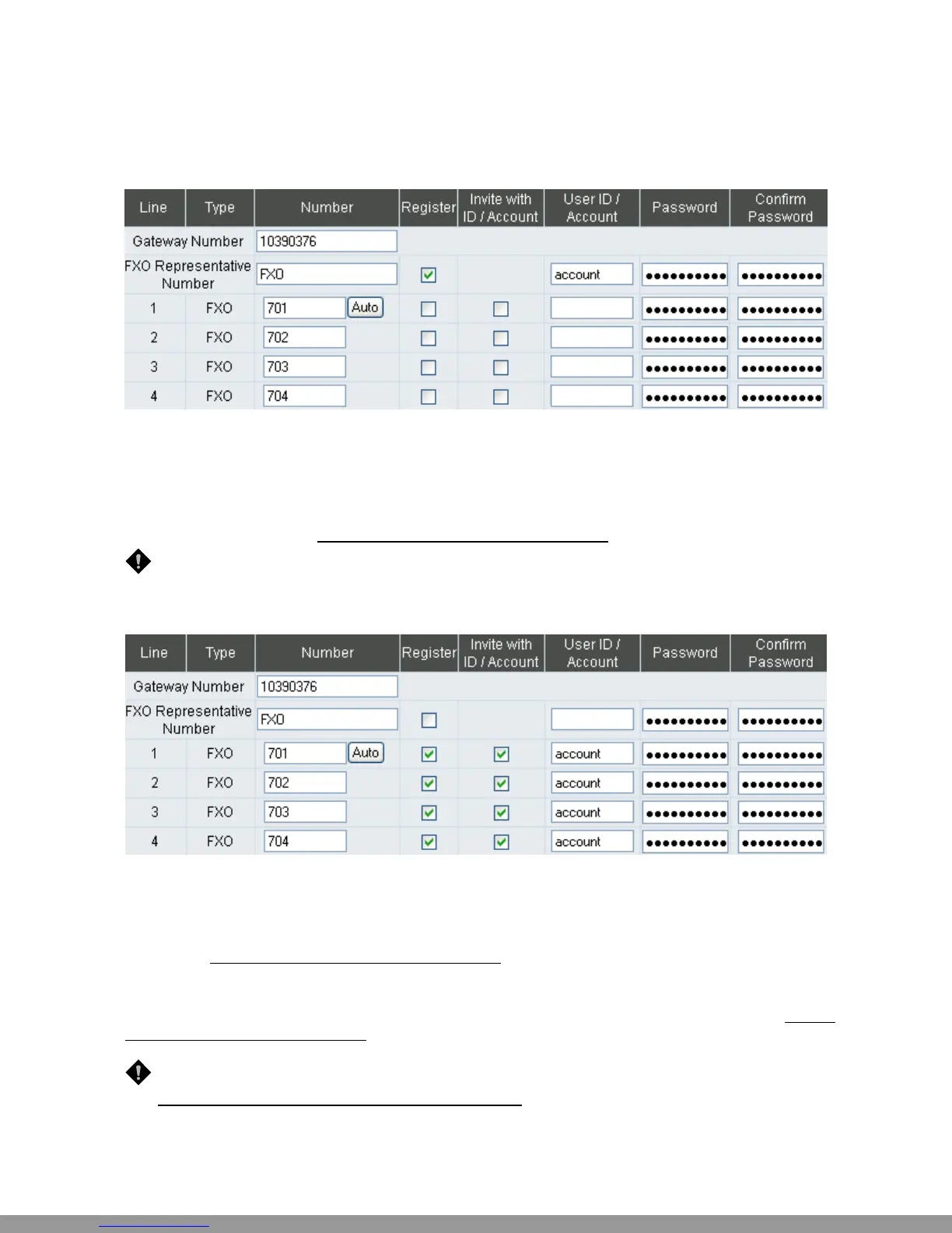 y FXO Representative Number: Register all FXO ports as a hunting group.