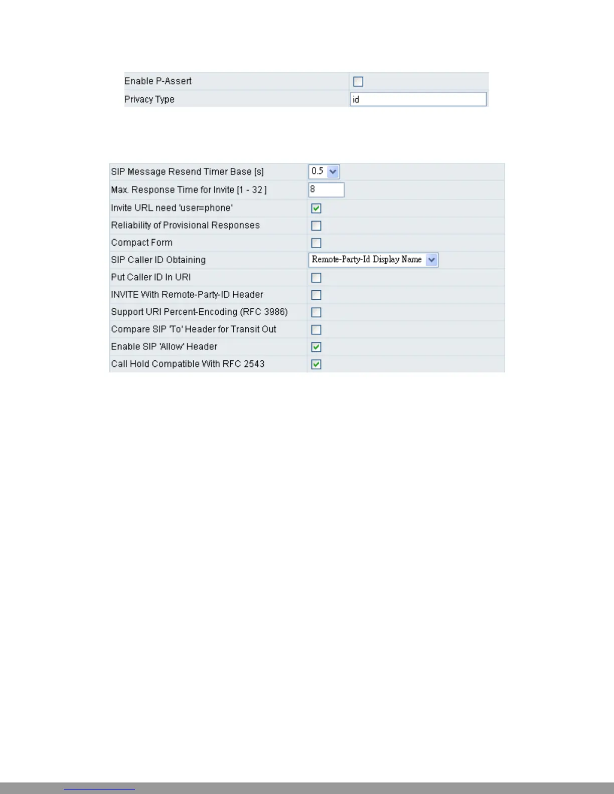 y Enable P-Assert: This variable is for caller ID protection.