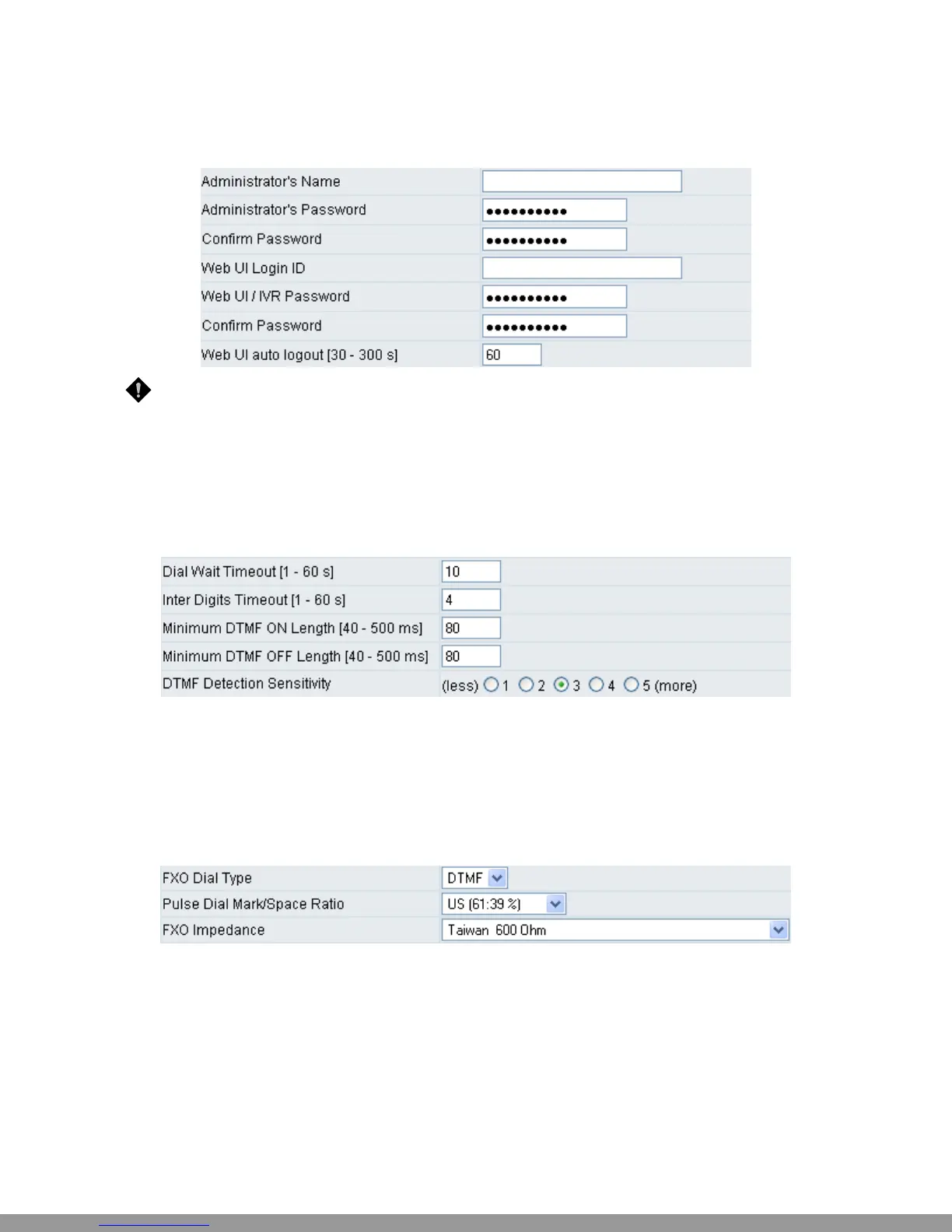 y Web UI Login ID and Web UI/IVR Password: Enter log-in ID and password when you log-in to the