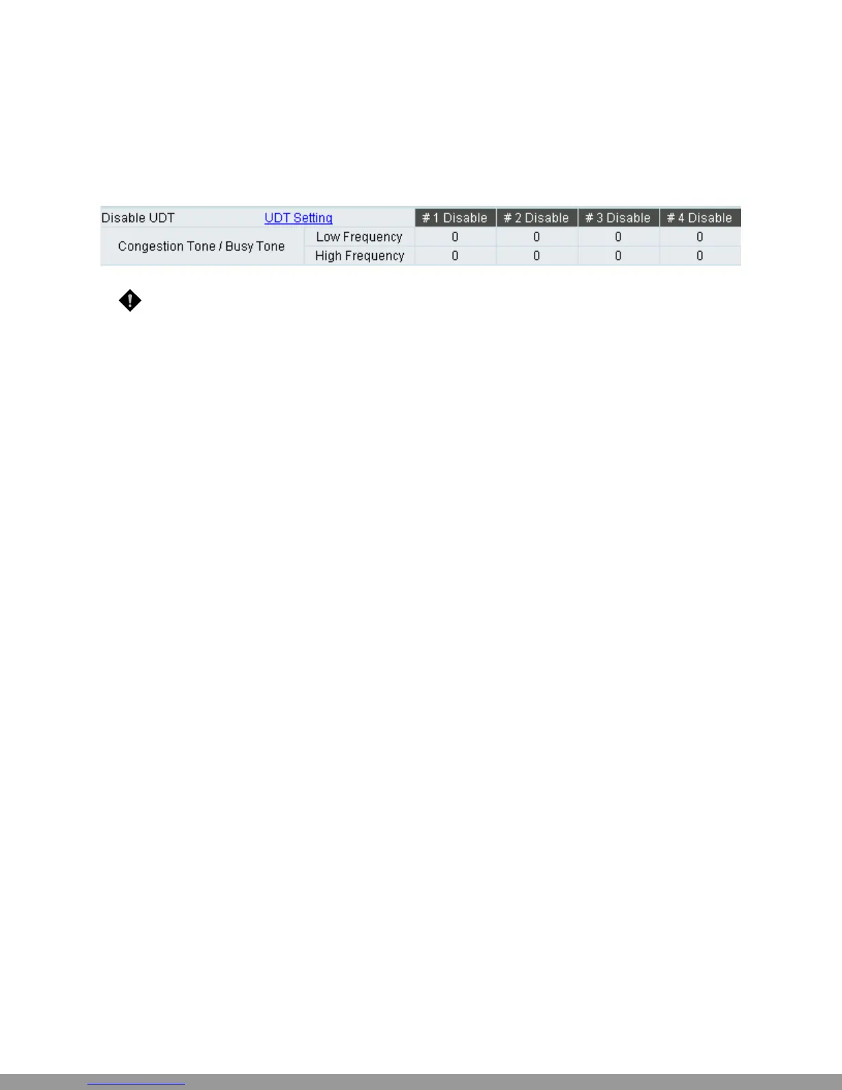 up the phone, then the UDT detection function can serve as a back up. To do this, enter the high/low