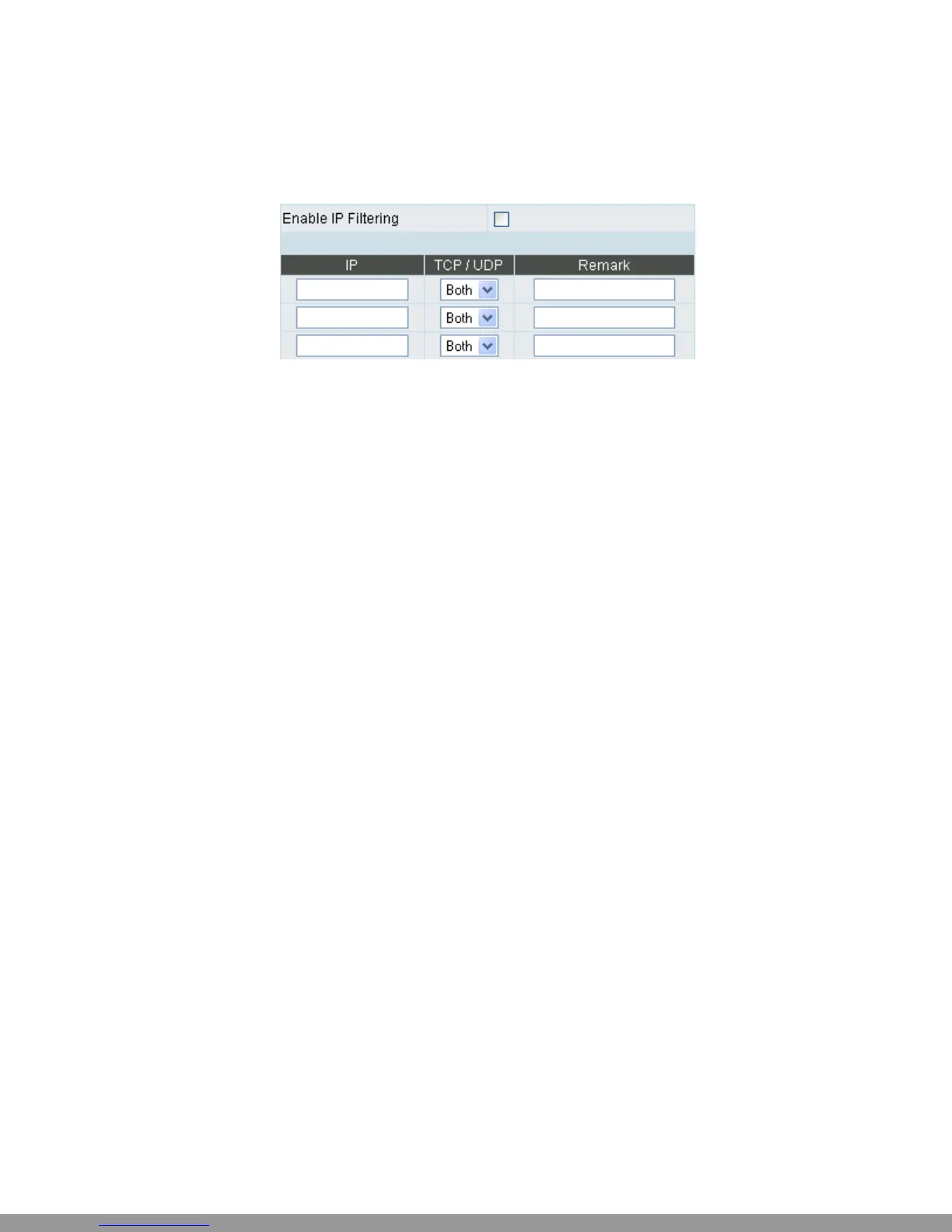 y IP: Input the IP address that you want to filter. The listed IP address will be unable to transmit data to and