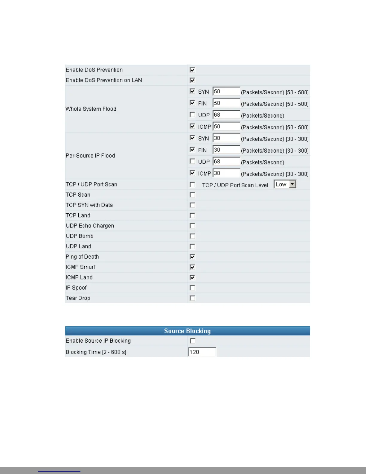 DVG-6004S/6008S User’s Manual DoS Prevention Settings