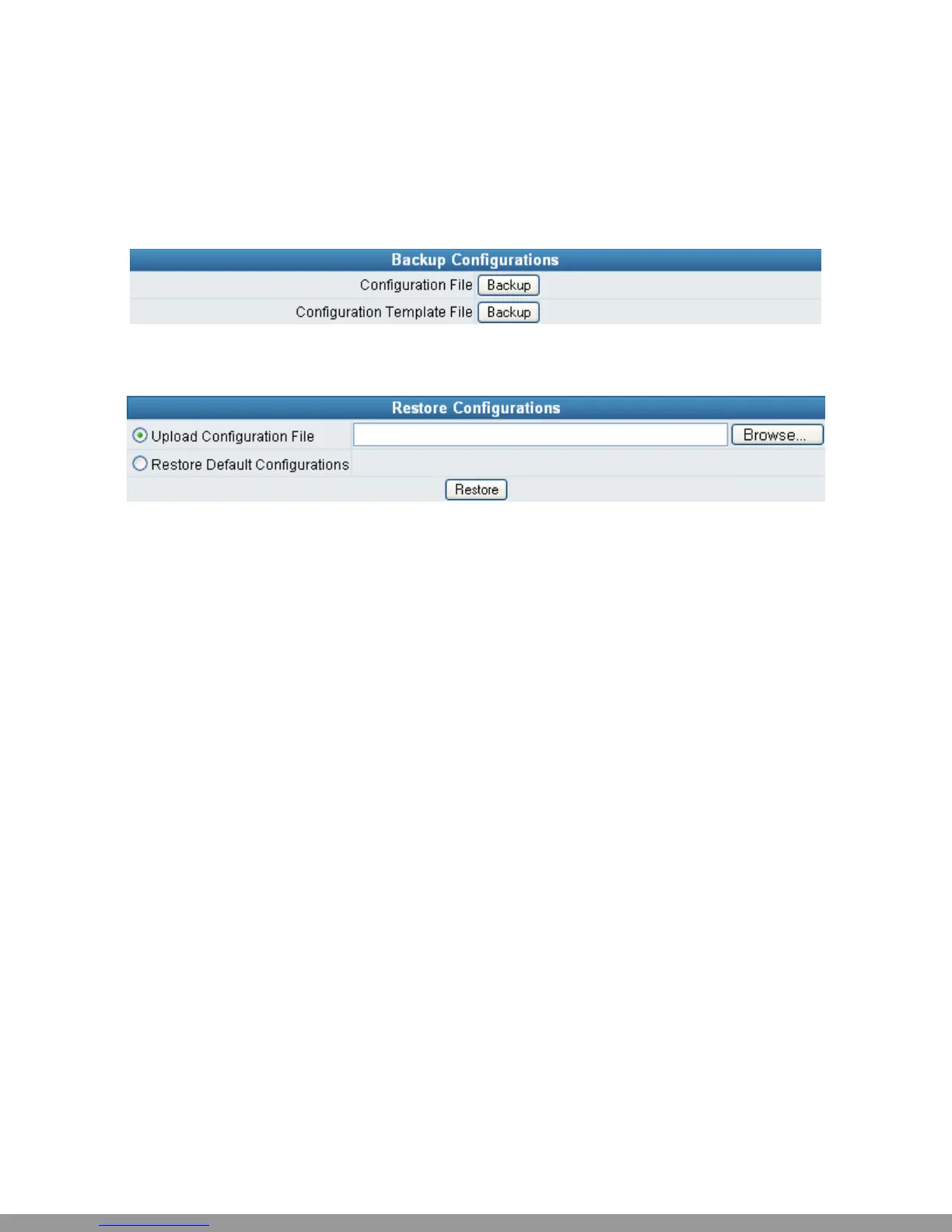 y Upload Configuration File: Upload the configuration file from somewhere to the device.