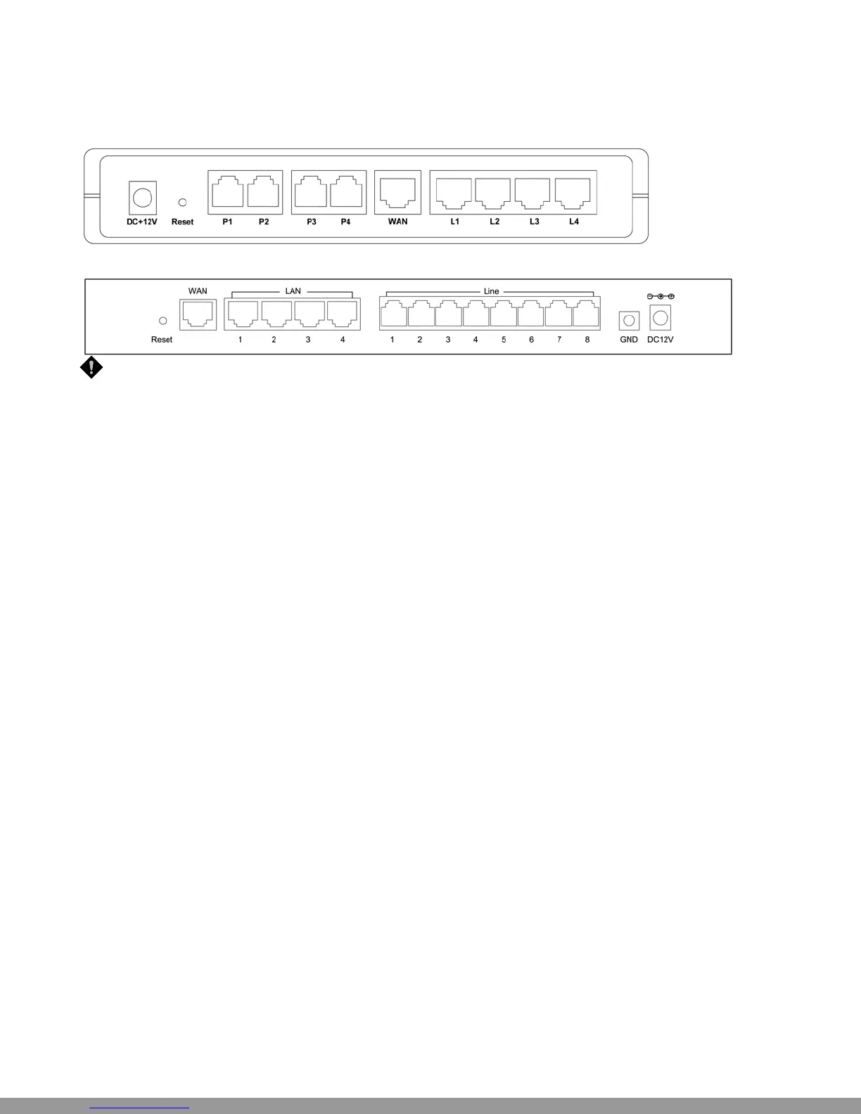 WARNING: DO NOT (1) connect the phone ports to each other (FXO to FXO) or (2) connect any