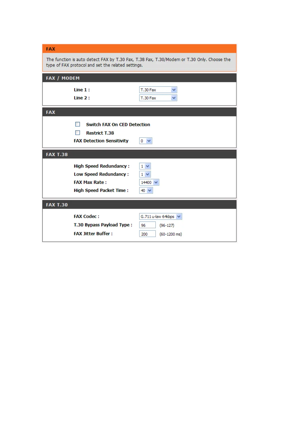 functionality (either T.38 or T.30). Please consult your VoIP Service Provider for this setting.