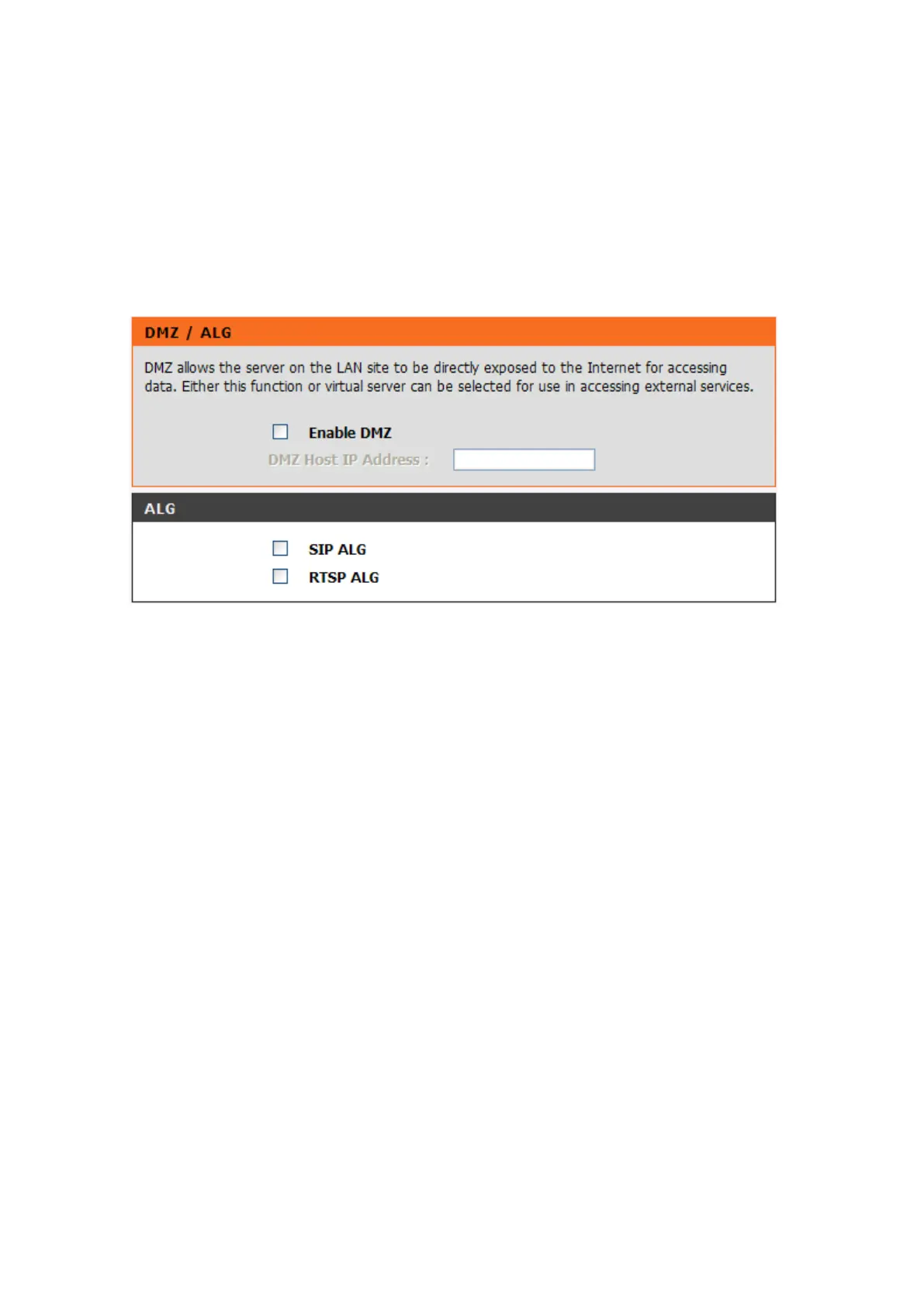 Note: Either this function or virtual server can be selected for use in accessing external services.