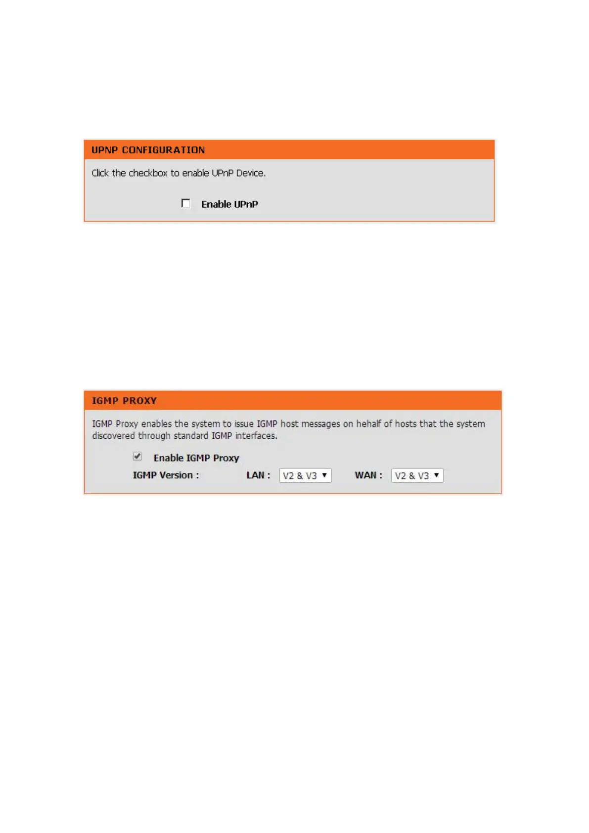 Enable IGMP proxy: Check the box to enable IGMP proxy. IGMP proxy enables the system to issue