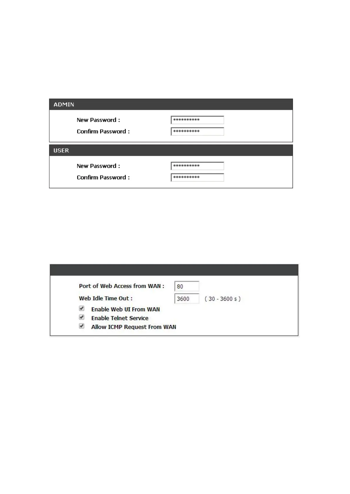 Enable Telnet Service: Check the box to enable Telnet access from WAN or LAN.