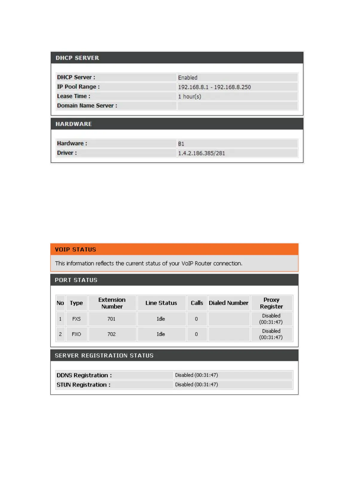 For Server Registration Status, it shows the registration status of DDNS and STUN.