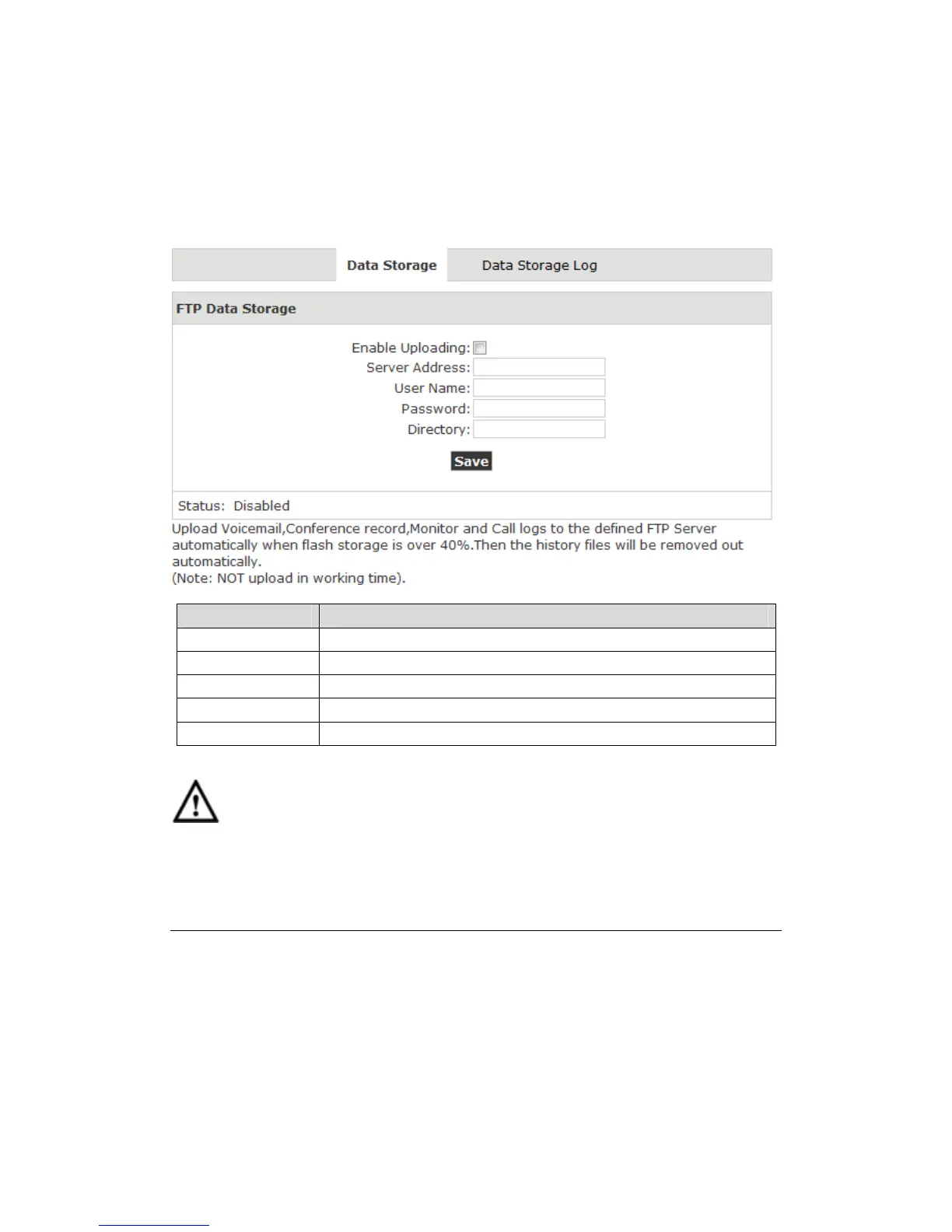 Upload the voicemail, monitor, conference, call logs, etc to the defined FTP server for
