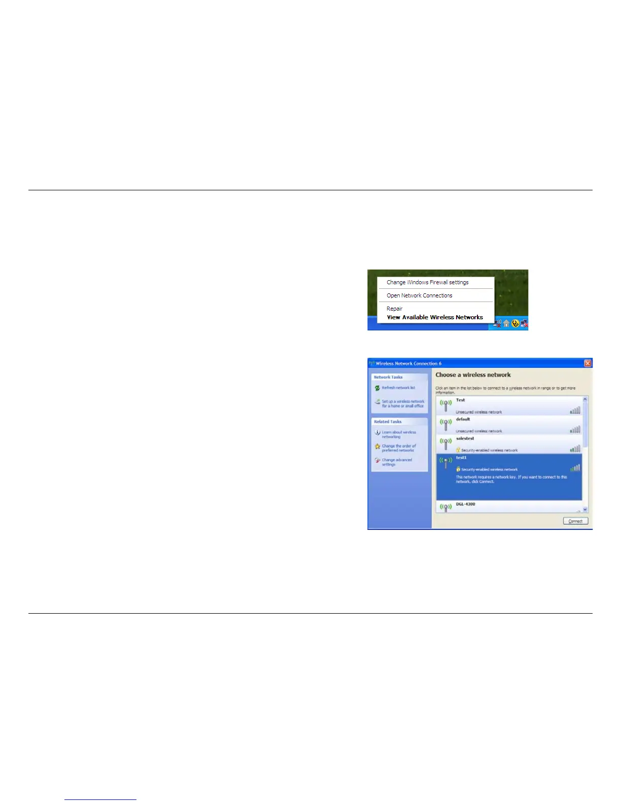 Right-click on the wireless computer icon in your system tray