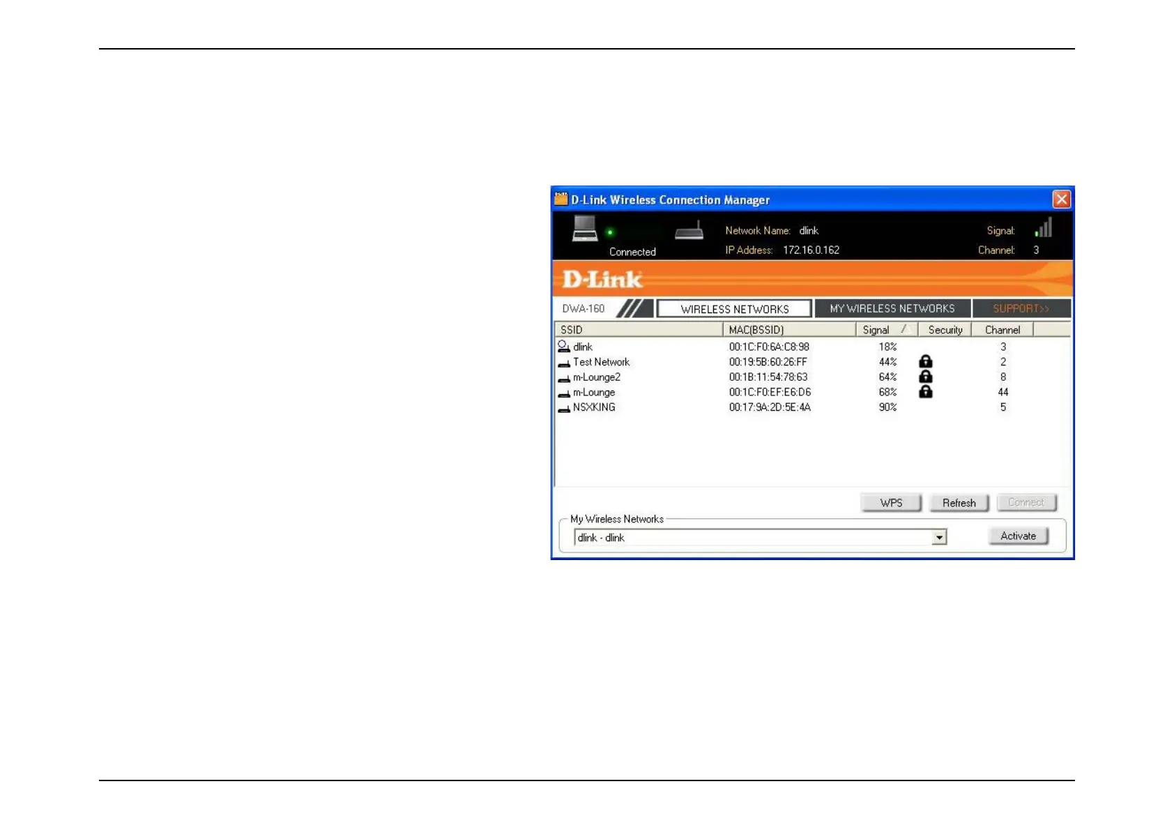 The Wireless Networks (Site Survey) page will display all wireless networks that are available in your area. To connect to a network,