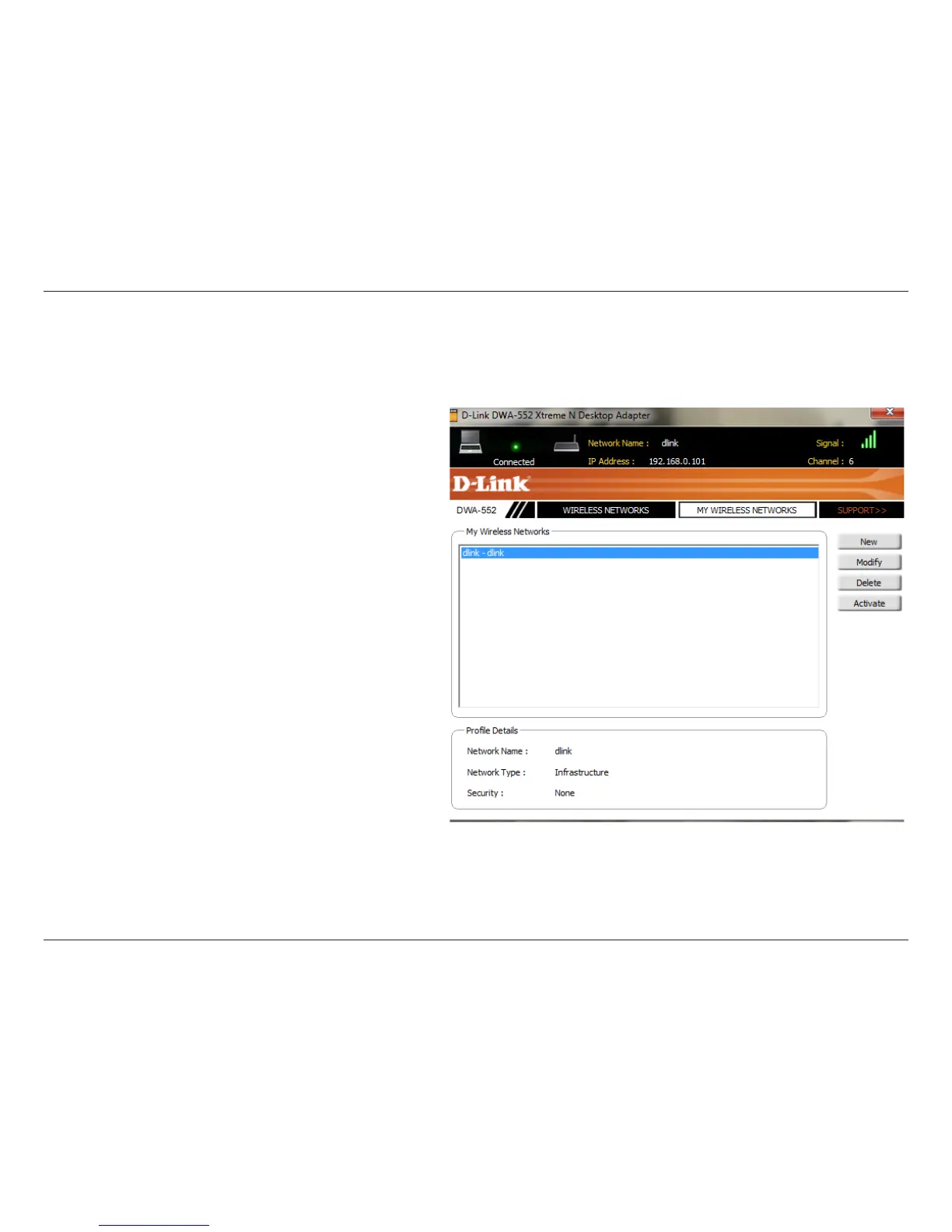 The My Wireless Networks page will allow you to create, edit, and delete wireless network proles. Every time you connect to