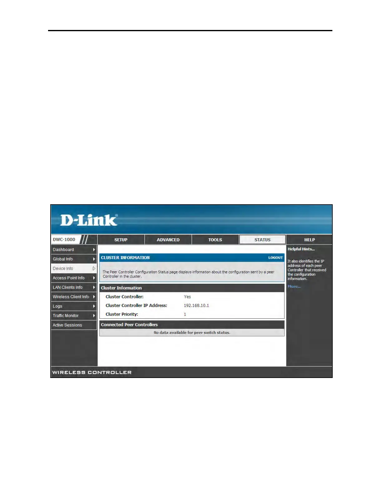 Path: STATUS > Device Info > Cluster Information