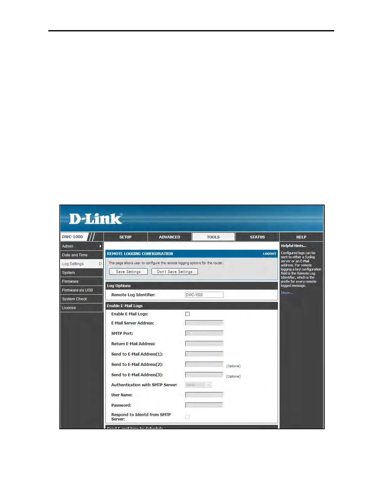 CONFIGURATION page. This page also lets you send configuration logs to 3 email