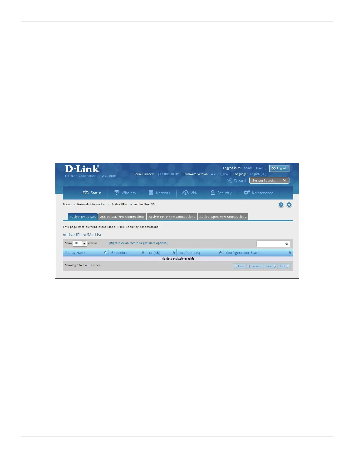 Path: Status > Network Information > Active VPNs > IPsec SAs