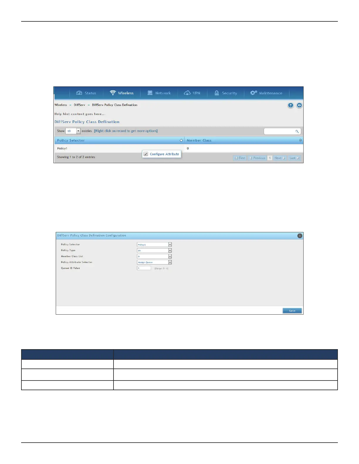 Path: Wireless > DiServ > DiServ Policy Class Denition