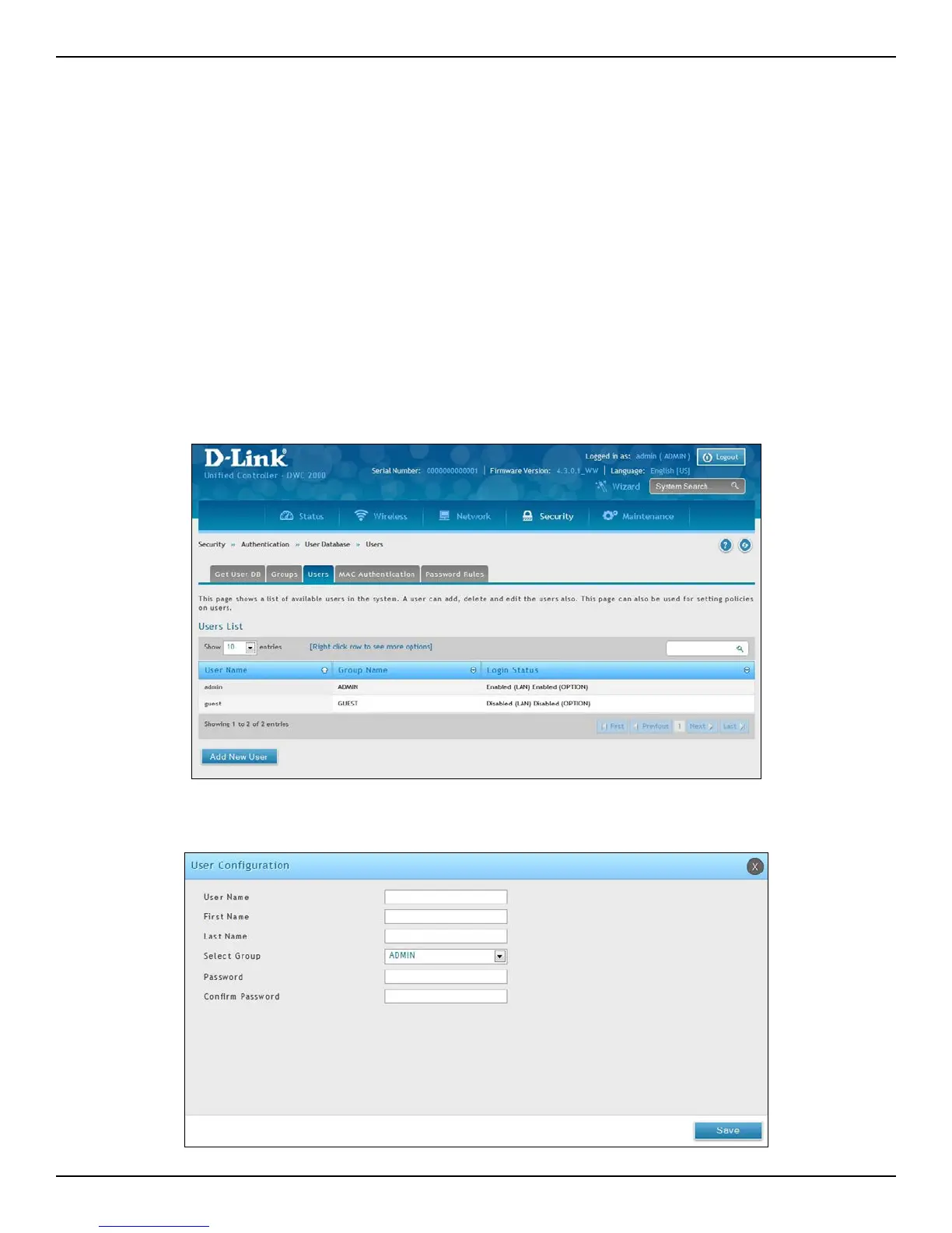 2. Click Add New User. The User Conguration pop-up page will appear.