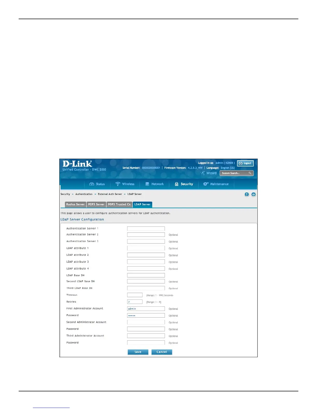 Path: Security > Authentication > External Auth Server > LDAP Server