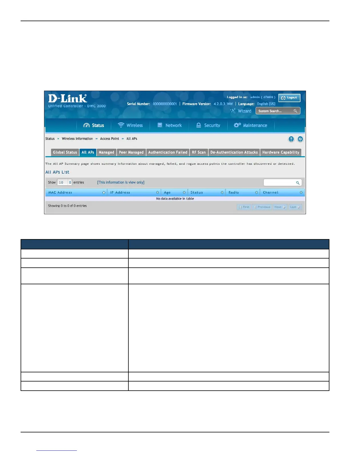 Path: Status > Wireless Information > Access Point > All APs