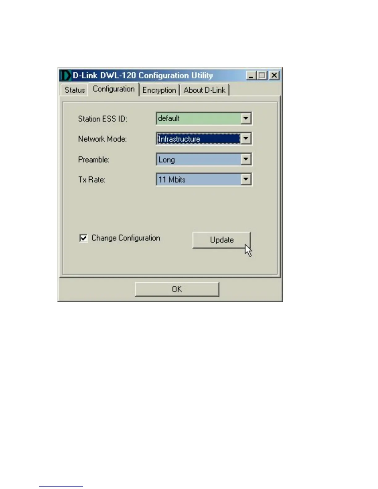 Highlight the desired setting, then click on the “Update”