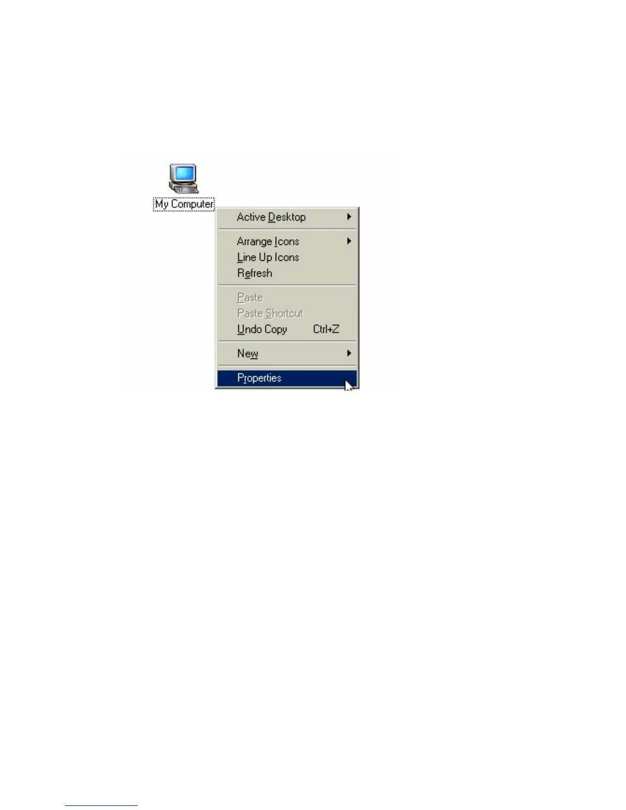 Right click on "My Computer" icon on the desktop.