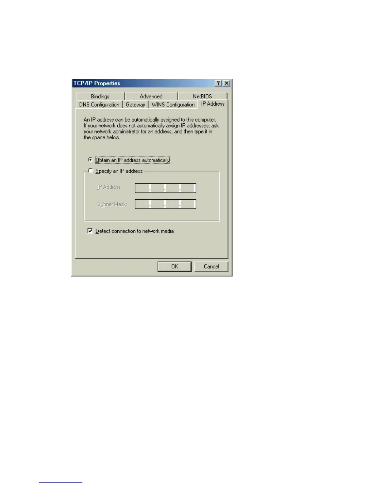 Select “Obtain an IP Address Automatically.”