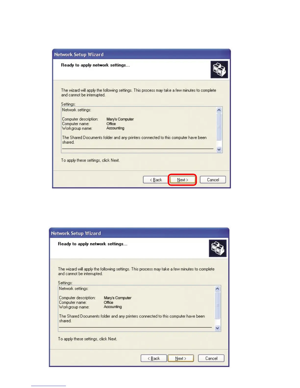 Please wait while the Network Setup Wizard configures the computer.