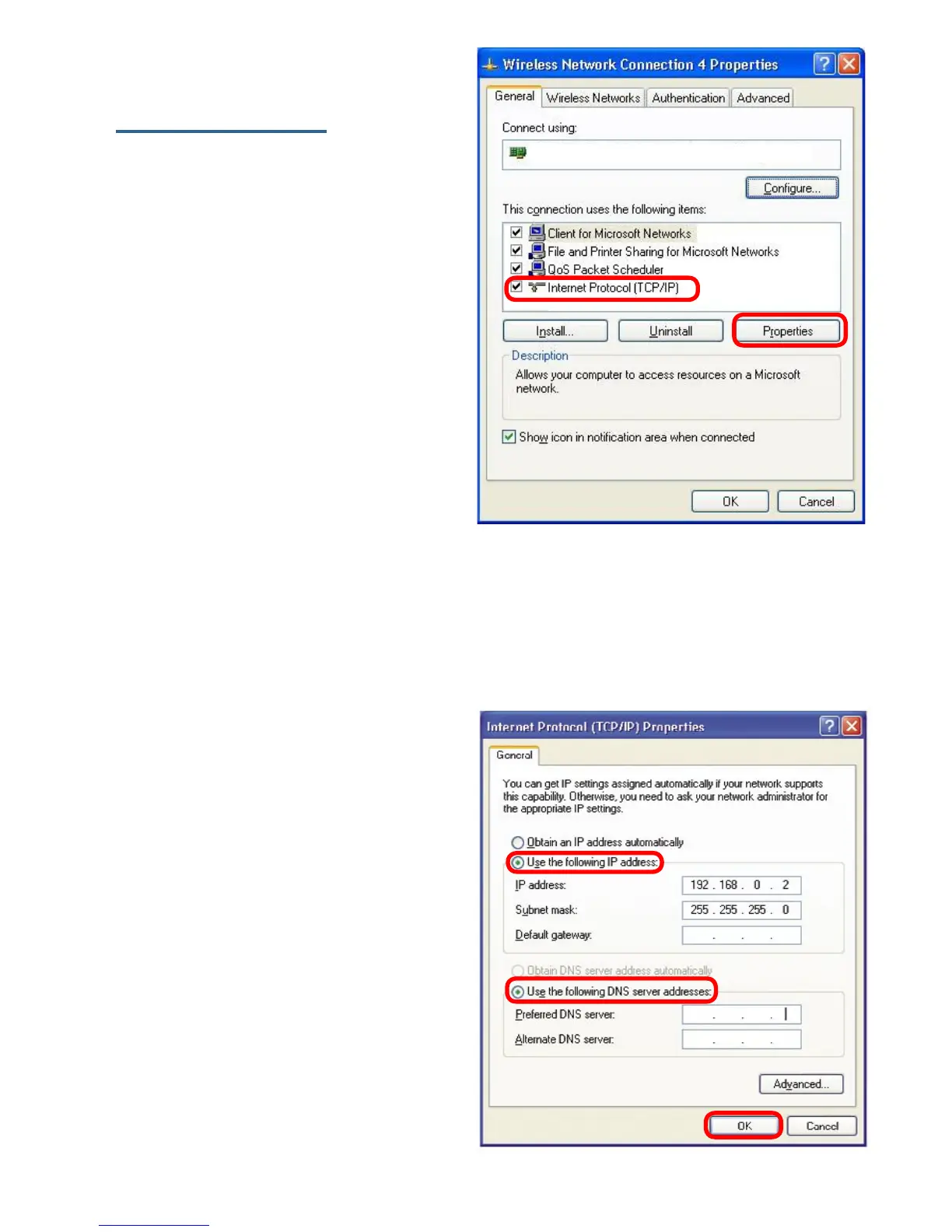 D-Link DWL-122 - Networking Basics - Static IP Configuration Details; Inputting IP, Subnet Mask, and DNS Settings