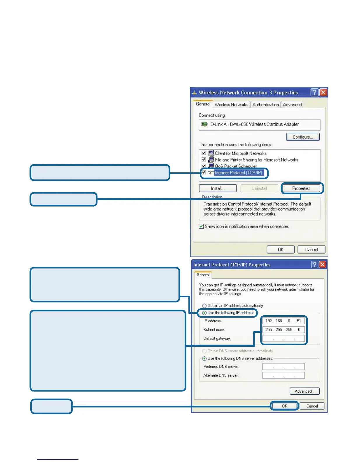 Select Use the following IP address in