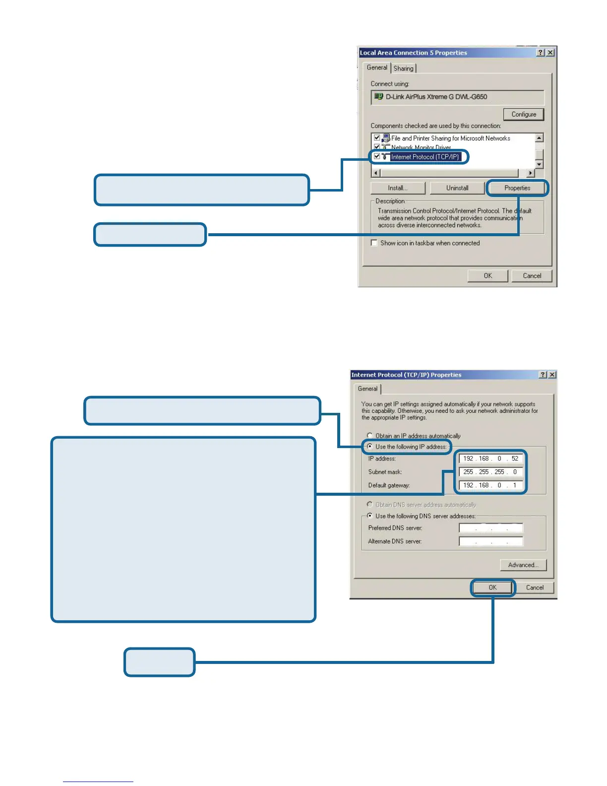 Pilih Use the following IP address