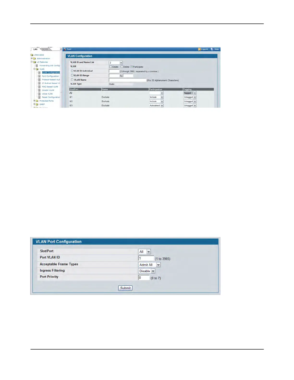 14. Go to the LAN > L2 Features > VLAN > Port Configuration page.